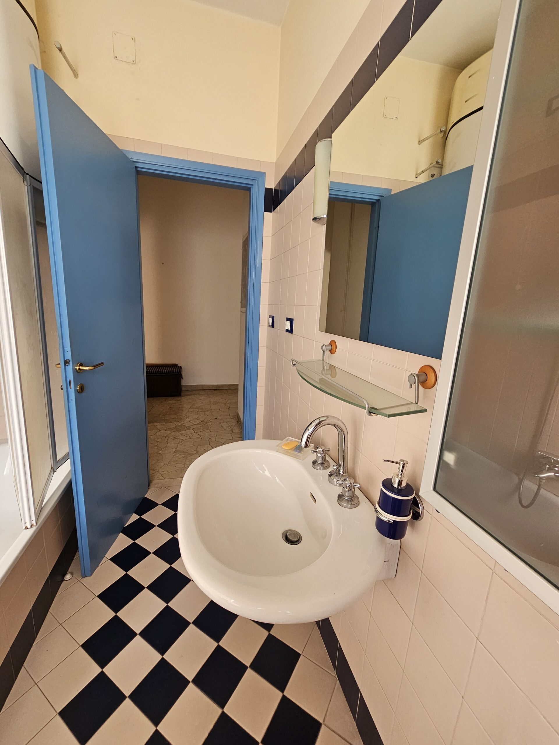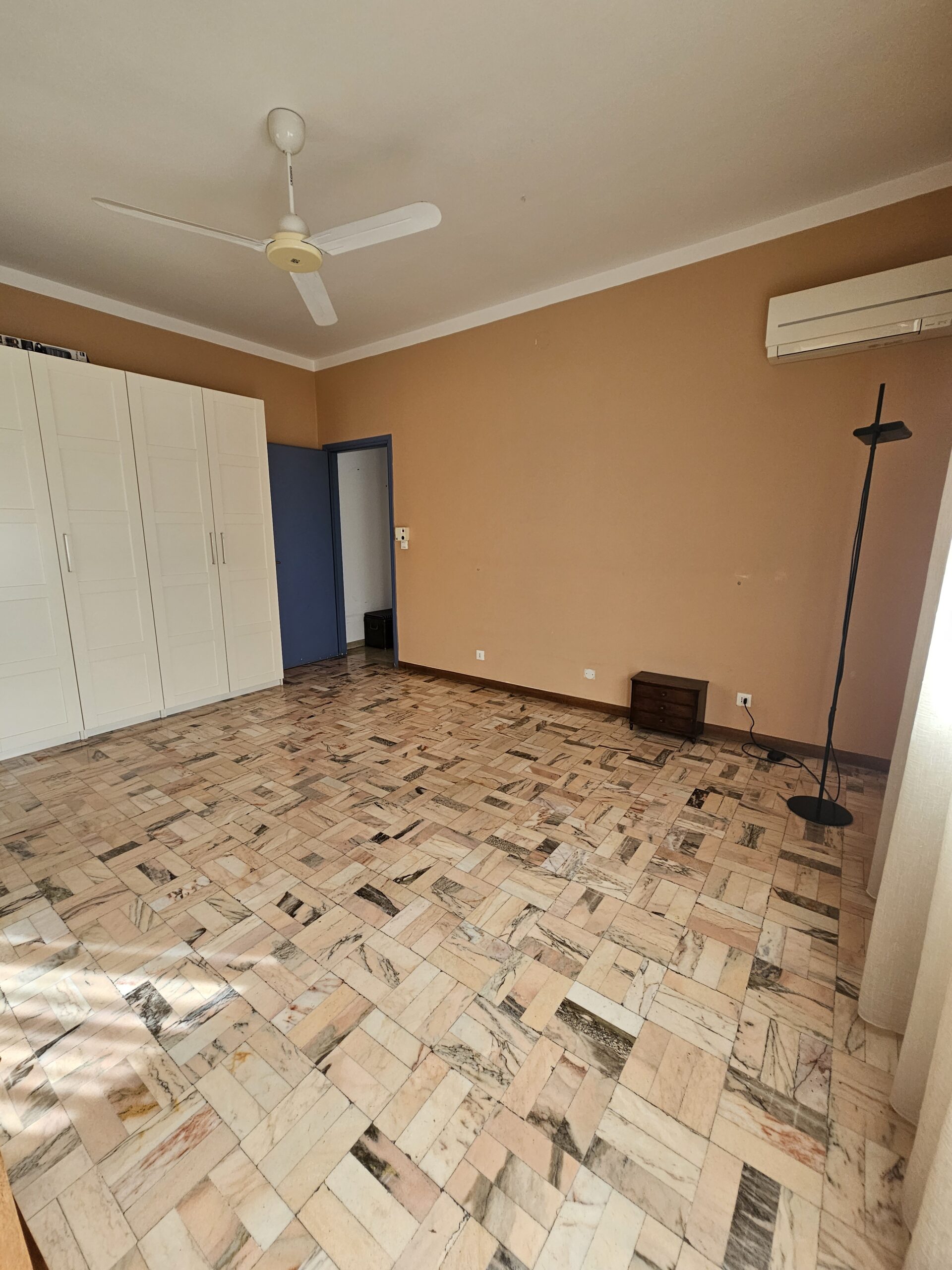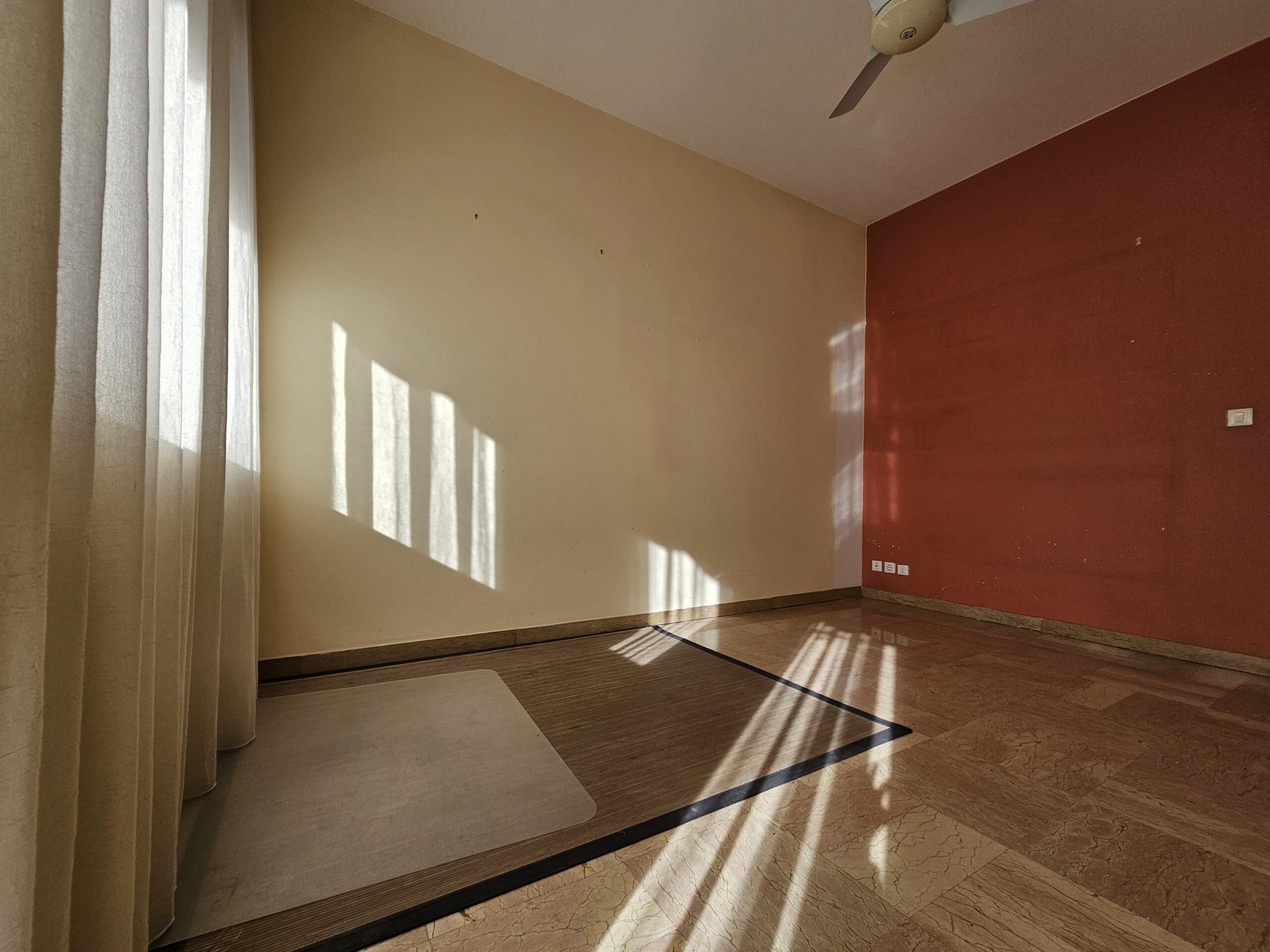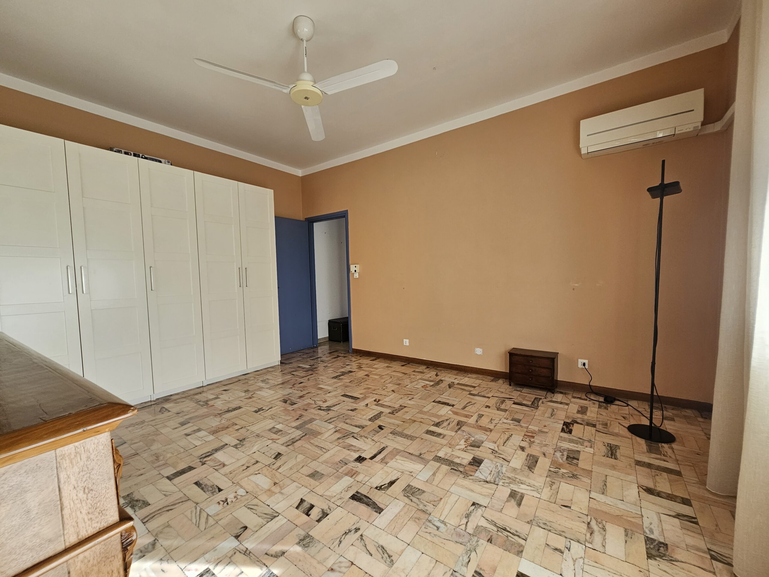 L’appartamento dispone di un corridoio notte che conduce a una camera matrimoniale con terrazzo privato e a una spaziosa camera singola. Il bagno finestrato garantisce luminosità e ventilazione. Inoltre, il garage al piano terra e la cantina offrono un ampio spazio extra.