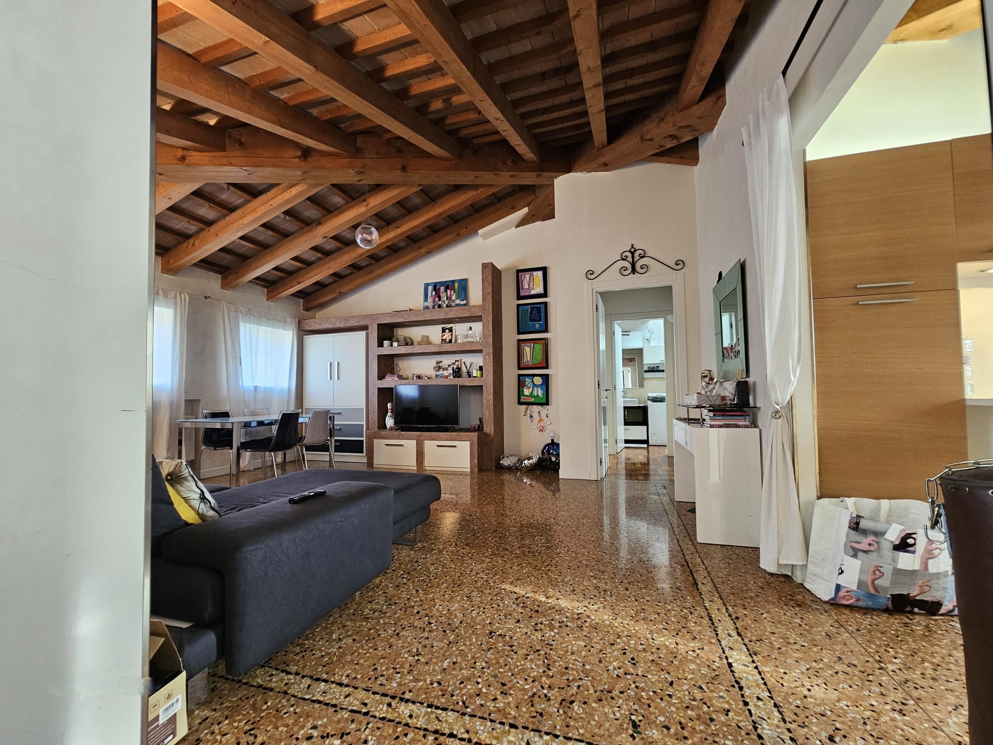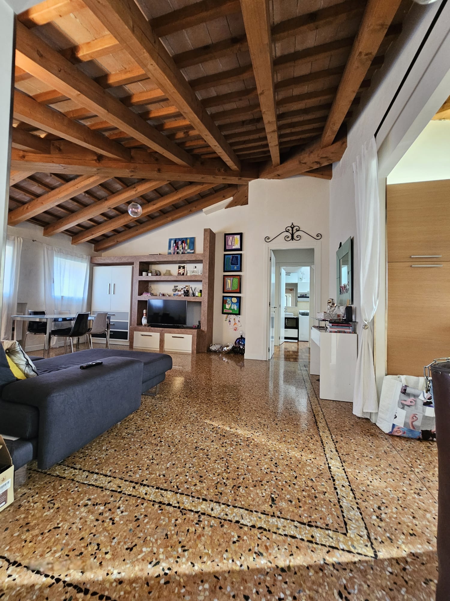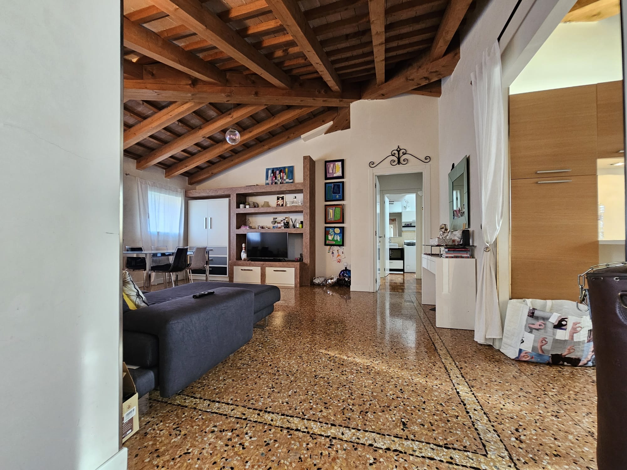 Una nota di pregio è il pavimento in veneziana, che aggiunge eleganza e valore all’intera proprietà.