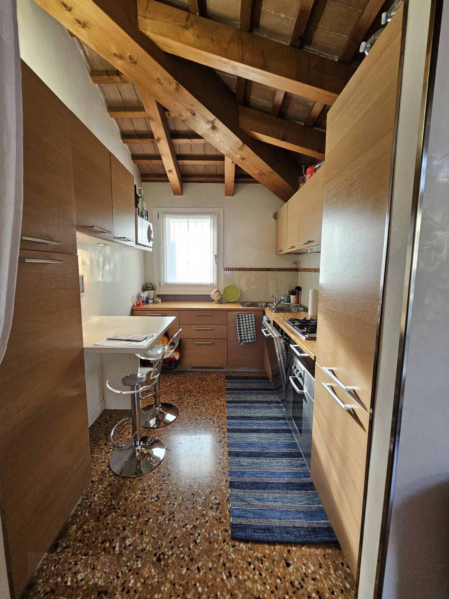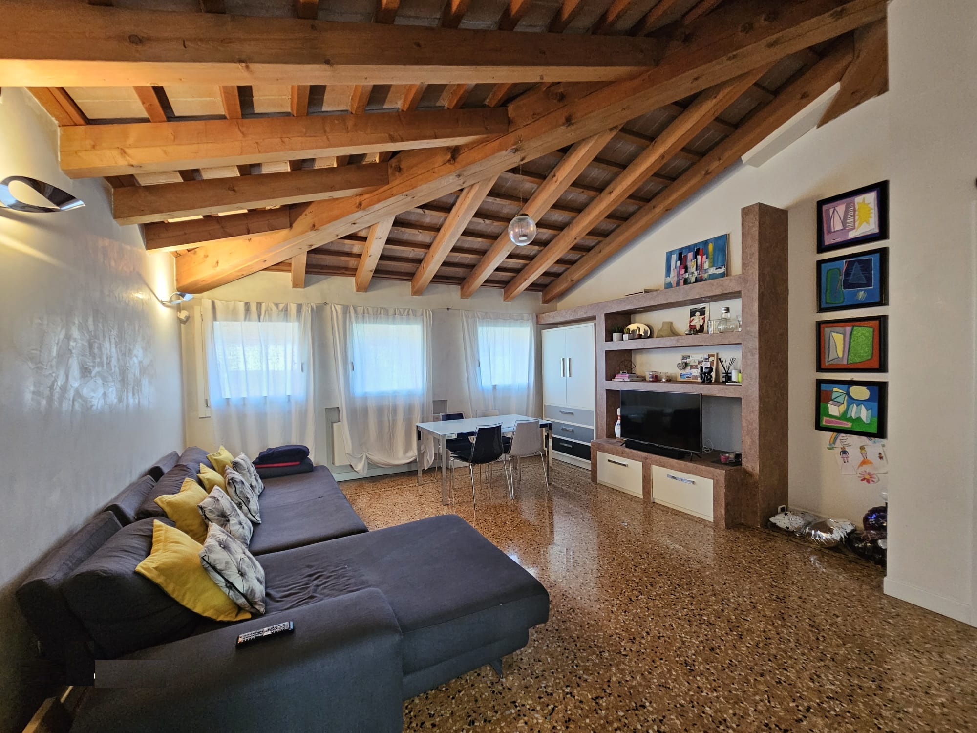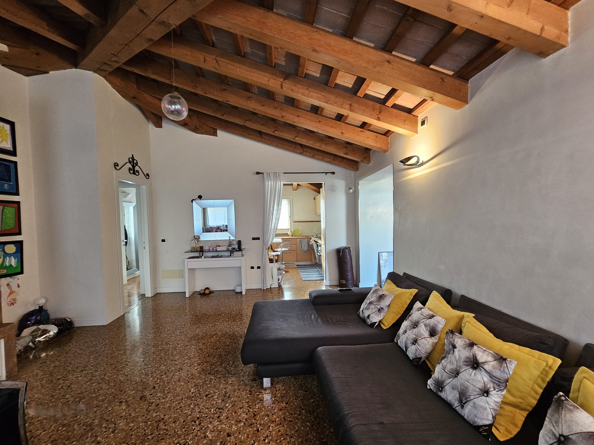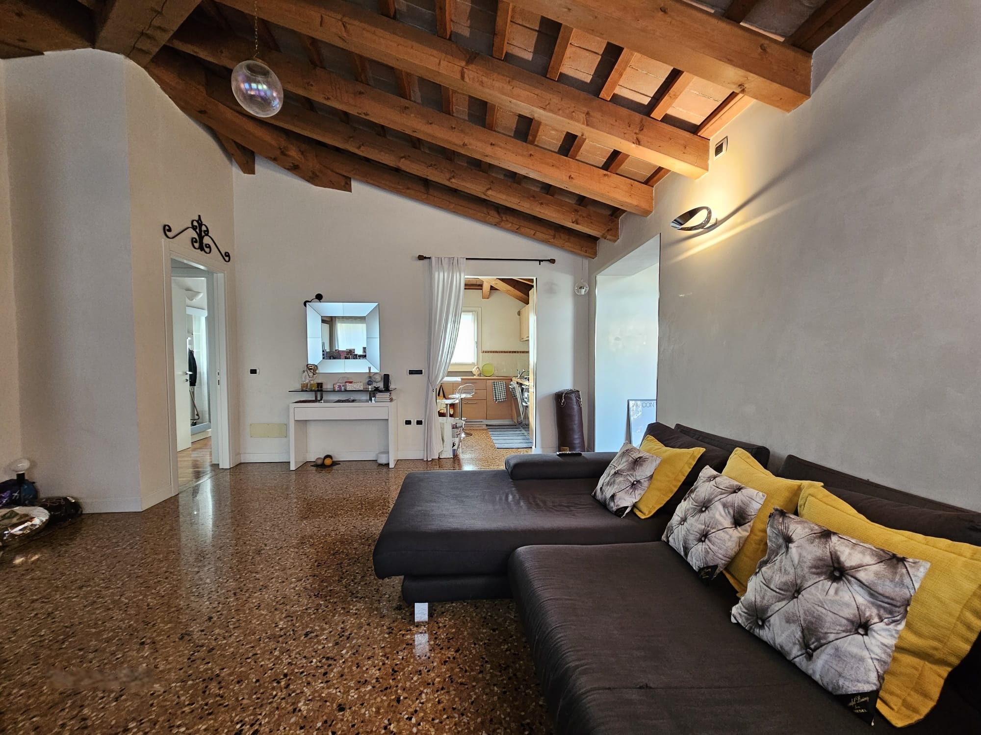 Una nota di pregio è il pavimento in veneziana, che aggiunge eleganza e valore all’intera proprietà.