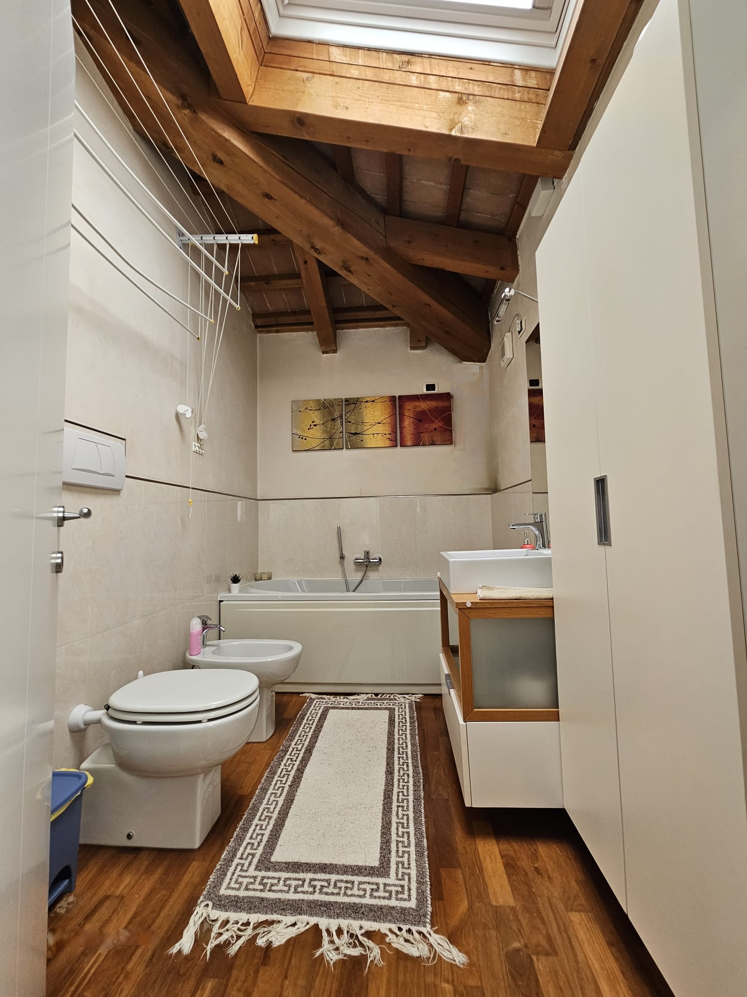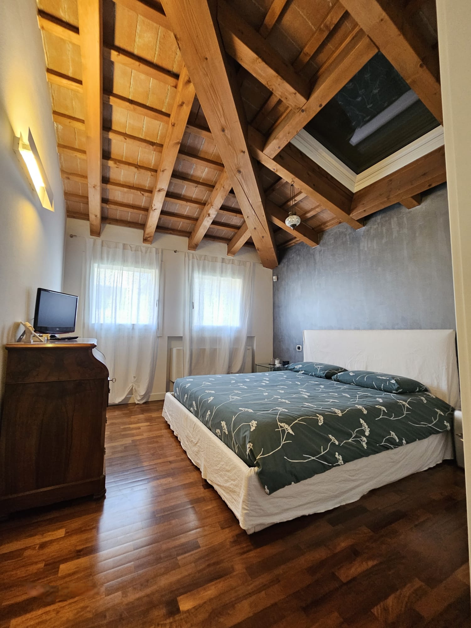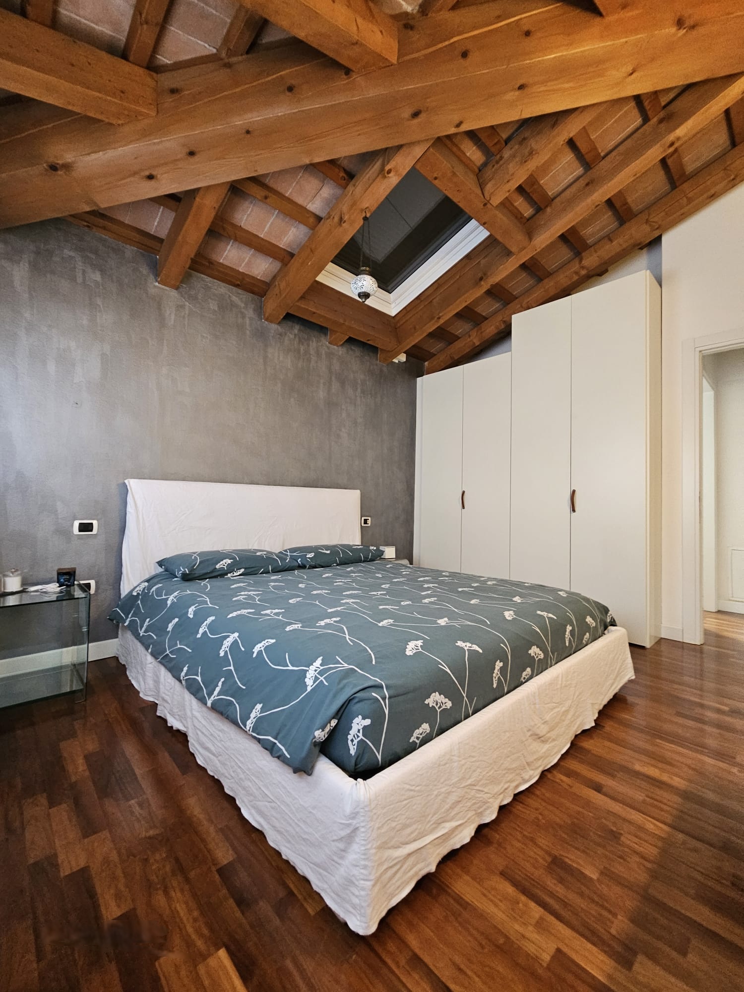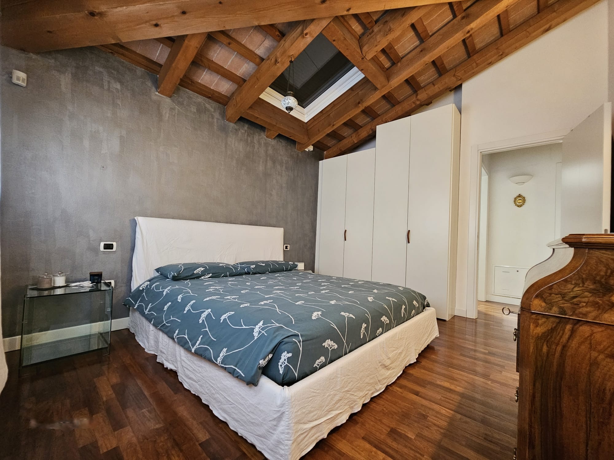 Affascinante bicamere situato al secondo e ultimo piano di una palazzina del 2005. L’appartamento si distingue per le suggestive travi in legno a vista  e le rifiniture di alta qualità.